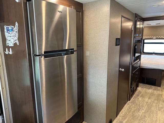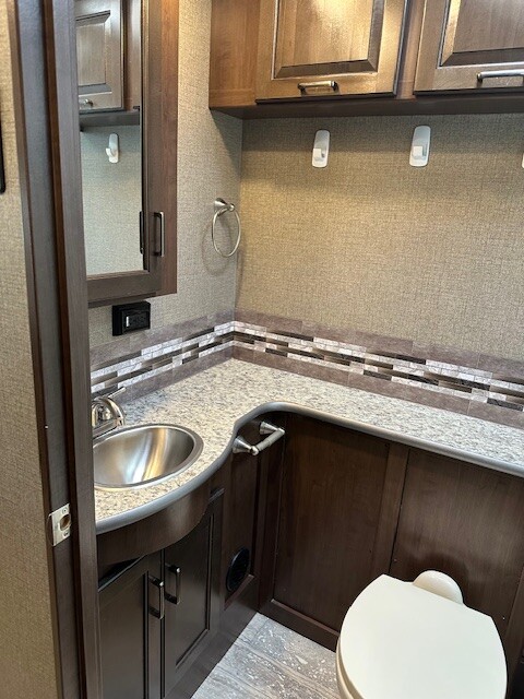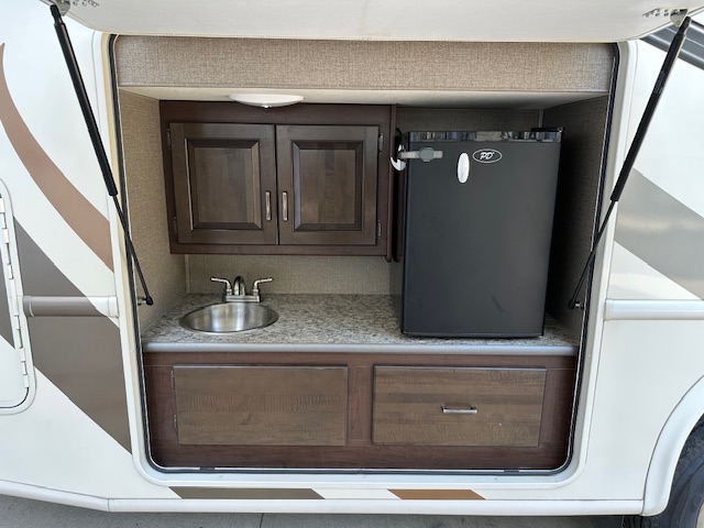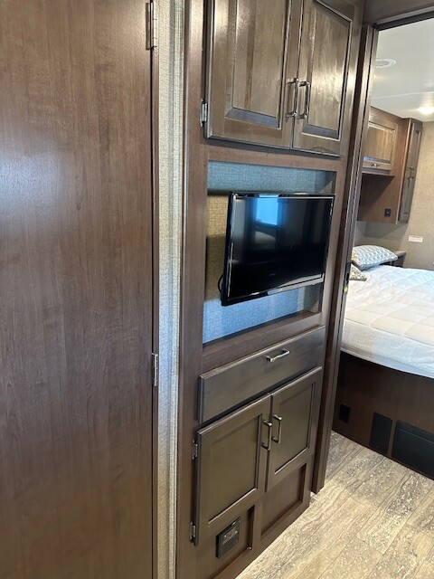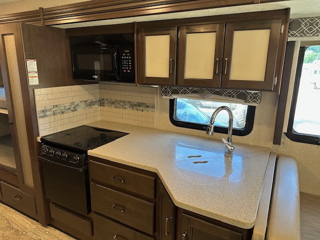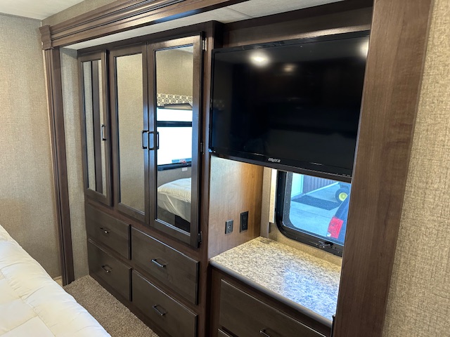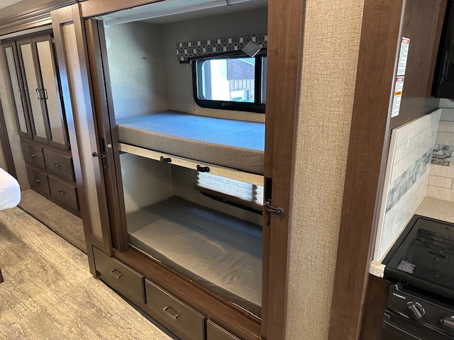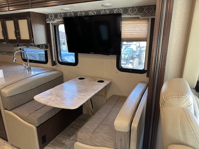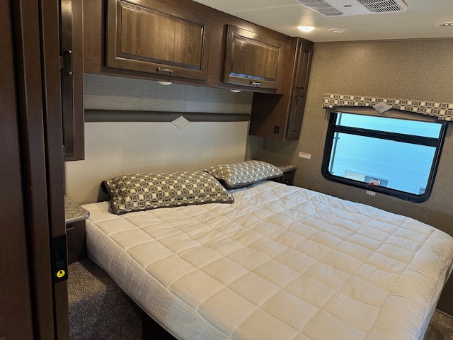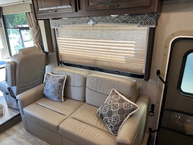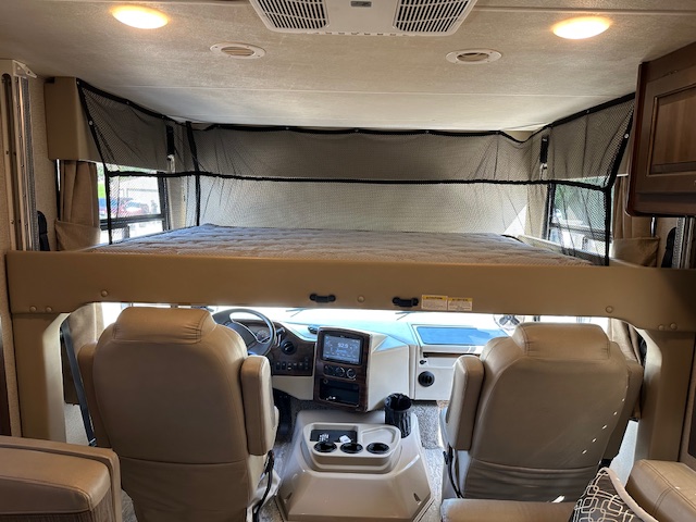 Must see. Sleeping space for the whole family. Sleeps 8-11 in total. Mid bunk with lofted bunk above drivers seating. Light used with only 7000 miles. Interior looks unused. This is beautiful class A.